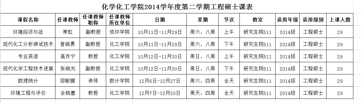 蘑菇视频 2014级在职研究生本学期课表
