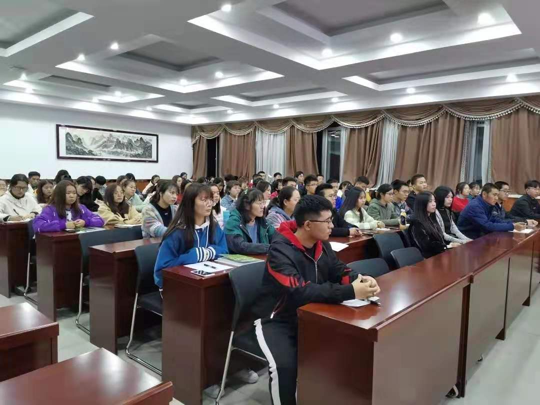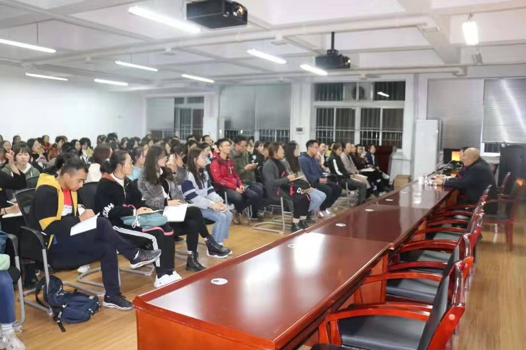 在知本楼报告厅中,纳志学老师为蘑菇视频