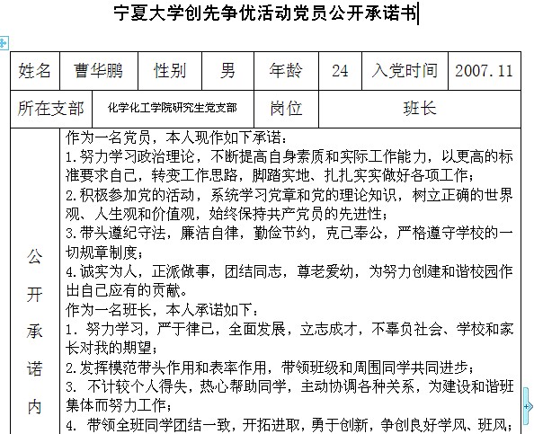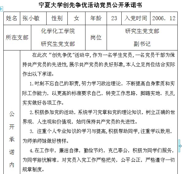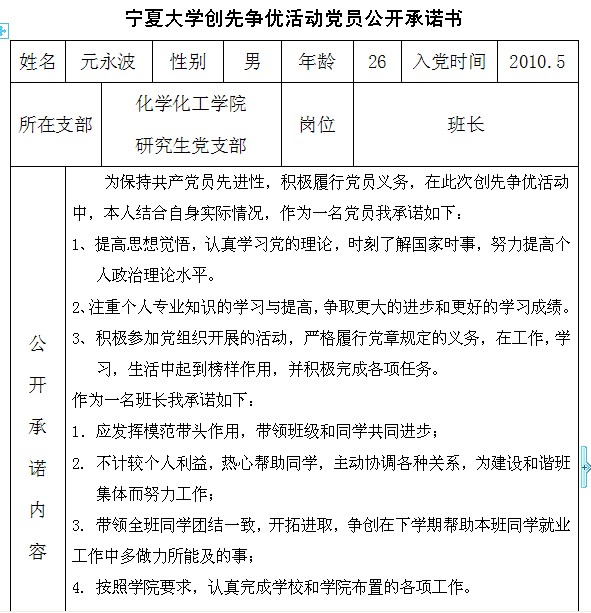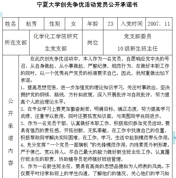 蘑菇视频 创先争优活动党员公开承诺书(研究生党支部)