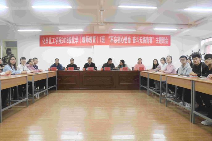 ,参与学院2018级化学(教师教育)1班同学们的 “不忘初心使命 奋斗无悔青春”主题班会。