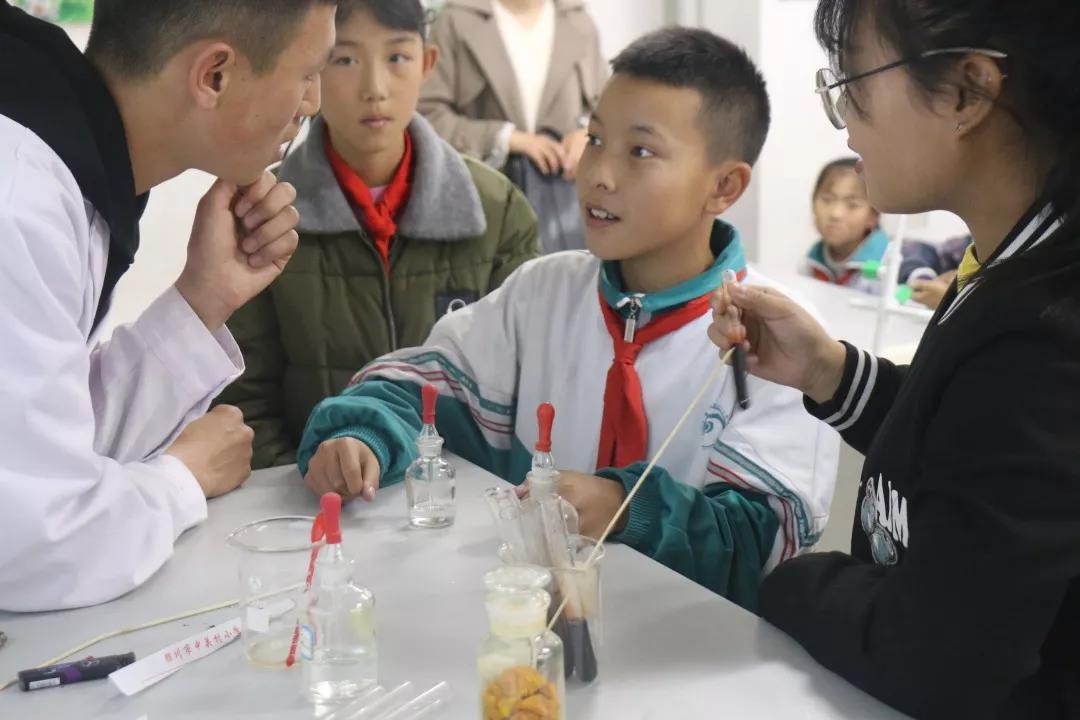 随后,志愿者们进行了“三价铁离子与硫氰化钾的络合反应”实验,实验中,在滴加硫氰化钾的过程中溶液会变为血红色,看到如此有趣的实验现象,小朋友们跃跃欲试,也想和志愿者们一样动手操作,切身感受化学实验的魅力。