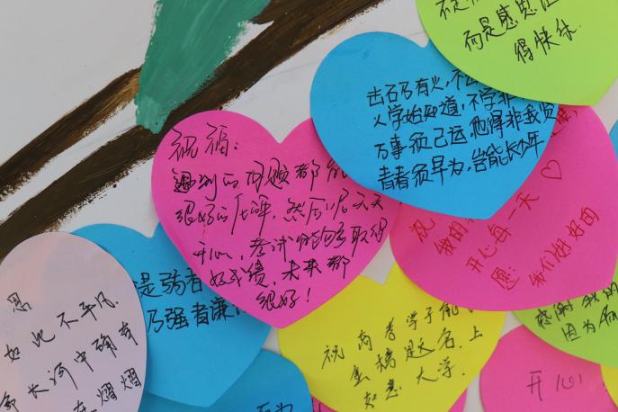 活动现场,精心制作的展板引的不少人驻足观看。展板上一张张可爱的笑脸组成“心形”图案,极具感染力,让人温暖。“解忧杂货店”采用匿名形式为同学们排忧解难,真正让心理辅导走进班级,走进每一位同学心间。“心灵涂鸦”展板,积极探索出心理辅导的新渠道、新方法,为大家提供了一种新的表达情绪的方式,一个相互交流互相理解的平台。“爱的抱抱”和“我们合影吧”,则有效引导参与同学宽容坦诚地面对生活、面对身边的人,帮助参与人员有效地释放情绪,缓解压力。来自各个学院的老师、同学们们分别与玩偶拥抱并合影,脸上洋溢着满满地笑容。