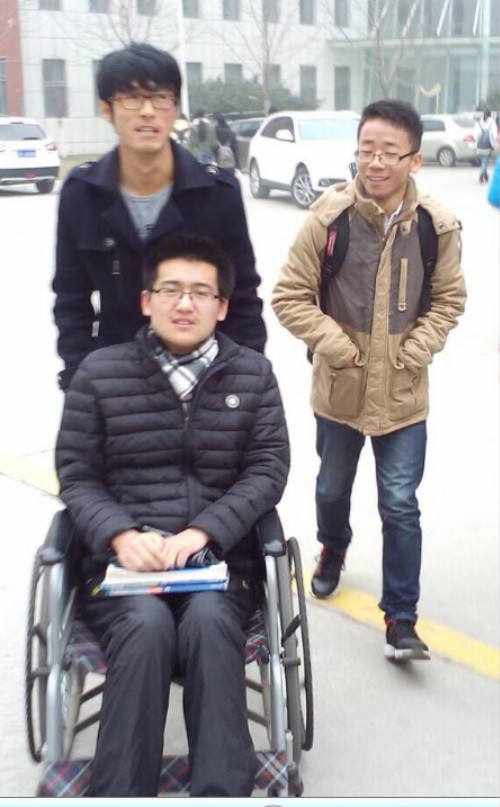 化工一班有一位身患脊肌萎缩症的同学叫杨伟立,家庭贫困的他坐着轮椅读大学,生活、学习上的困难太多了!班委组织全班的4个男生宿舍轮流值班,接送杨伟立上课。每天上课需要过地下道,在两个校区间转换教室和实验室,上下楼梯需要四名男生抬着轮椅,风雨无阻,男生们从没有一人忘记接送杨伟立的职责。杨伟立感恩父母和同学,努力学习,取得优异的成绩。怕杨伟立孤单,空闲时,男生女生总往杨伟立的家里跑,和他聊天,推着他出去转转。