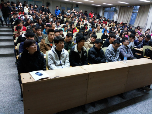 潘瑞副书记与同学们一起分享了两段视频录像,帮助同学们积极面对大学生活、明确奋斗目标,做到专业励志,懂得感恩奉献。2013级化学工程与工艺专业学生闵璐作为国家励志奖学金代表发言,她分享了自己在学习、工作、生活方面的一些体会和取得的成绩,“有目标就要坚持下去”,她的话引起了台下同学的共鸣;2013级化学工程与工艺专业学生杨荣同学代表获得国家助学金的同学发言,他从大学的选择、坚持、学生工作等几个方面分享了个人经历,提出了要常怀感恩之心,努力回报家长、老师和学校,并用自己的实际行动去帮助周围的同学。