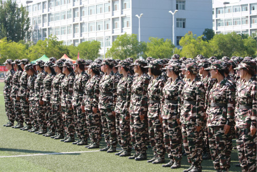 每天清晨,伴着清亮的口哨声,同学们身着迷彩服,整齐地列队跑步。紧接着,繁重的军训内容铺展开来。站军姿、踢正步、敬军礼是军训的基础。同样的动作,重复了一遍又一遍,教官们也极有耐心地纠正着各种错误。尽管训练很苦,但大家的内心是充实的,因为军训是在考验他们的意志,锻炼他们的体魄。