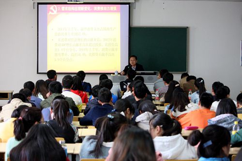 赵书记从“中国梦”、“两个一百年”入手,围绕全面建设小康社会的奋斗目标、促进经济发展新常态的新背景展开讲座。他指出,中国梦归根到底是人民的梦,值得每一个中国人关注,青年学生要坚定理想信念,要把个人的具体梦想与国家、社会发展,振兴中华紧密联系起来。赵书记就自己学习习近平总书记系列重要讲话的学习心得与在座的学生党员进行了交流,针对“全面建成小康社会的指标体系”的内容,学生党员们就民生、文化、经济、生态等方面发表了自己的见解。随后,赵书记以党的十八大以来习近平同志关于经济工作的重要论述为重点,带领在座党员学习了习近平总书记提出的经济发展“新常态”这一概念,图文并茂的展示了“新常态”的新背景。最后,赵书记表示,大众创业已经成为经济增长新引擎,鼓励同学们积极创业,在实现中国梦的实践中放飞青春梦想。