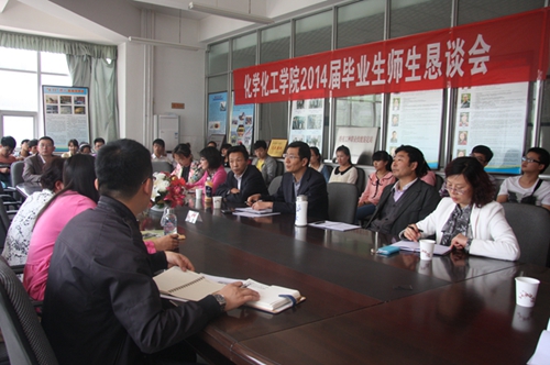 5月13日2014级毕业生恳谈会在化工学院301会议室召开,学院领导及各主要课程任课教师与2014级毕业生代表进行了对话交流,会议由学院党委副书记潘瑞主持。