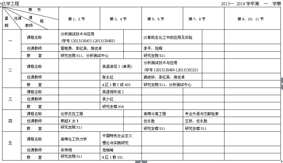2013级全日制硕士研究生课表-化学工程