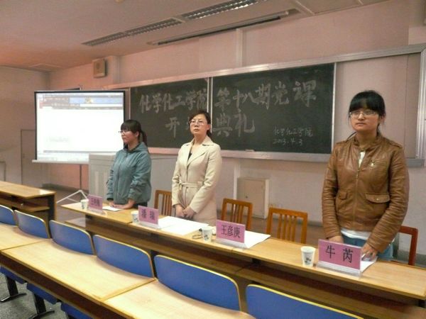 党总支副书记潘瑞老师到场,参加开班典礼的有辅导员王艳梅、牛芮,以及本期104名党课学员。