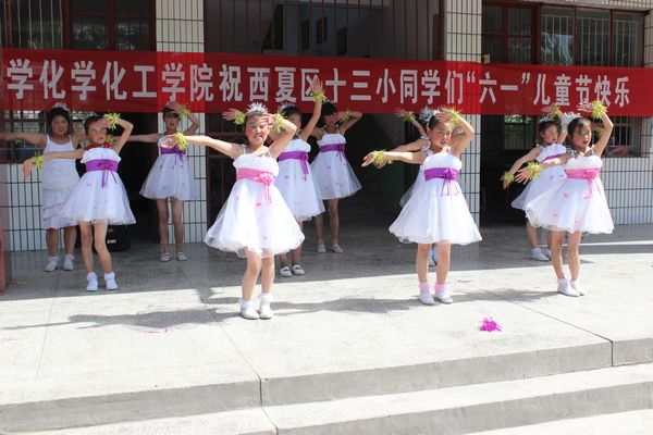 辅导员曹洋老师带领着学院志愿者大队部分志愿者来到西夏区第十三小学和同学们共庆“六一”表彰大会暨首届文化节。