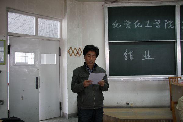 2012年4月18日下午,化工学院第十五期党课结业典礼在北教131教室举行,学院党总支书记李嗣丞做了《传统文化与大学生修养》的专题讲座。党总支副书记潘瑞主持了结业典礼。