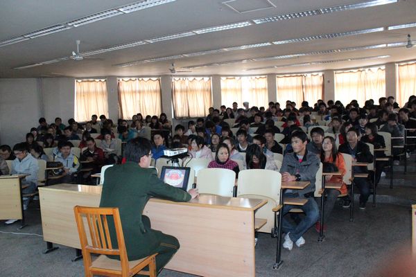 会上,王参谋从上海某高校火灾实例为引介绍高校发生火灾的原因及存在的隐患,警醒同学们注意日常生活中注意防火防电安全,在宿舍切勿使用大功率用电器。此外,他图文并茂地讲授火灾分类、灭火原理、灭火器械使用方法及注意事项、疏散指示标记等相关问题。将“预防为主,防消结合”的理念灌输给在做学生。同学们听得聚精会神并认真做笔记。