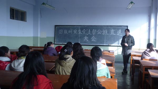2009级研究生党支部 “公推直选”选举大会在工科楼705教室顺利召开。会议由研究生辅导员杨扬老师主持,全体2009级研究生党员和部分同学参加会议。