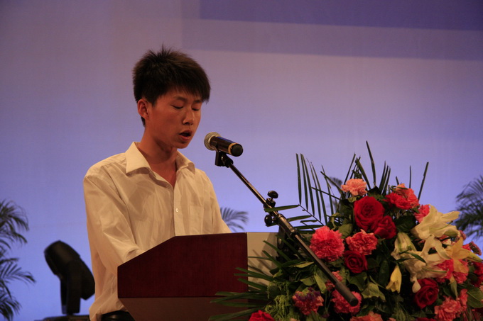 54名预备党员庄严肃穆的入党宣誓,给党的90岁的生日献礼。之后,潘瑞副书记宣读了“庆祝建党90周年”表彰决定,张宁副书记宣读了“十佳标兵”,“优秀毕业生”等表彰决定,同时对获奖同学给予厚望。在此,赵利宁副书记对化工学院取得的成绩表示充分肯定,并给予殷切希望,希望化院能有一个更美好的未来。