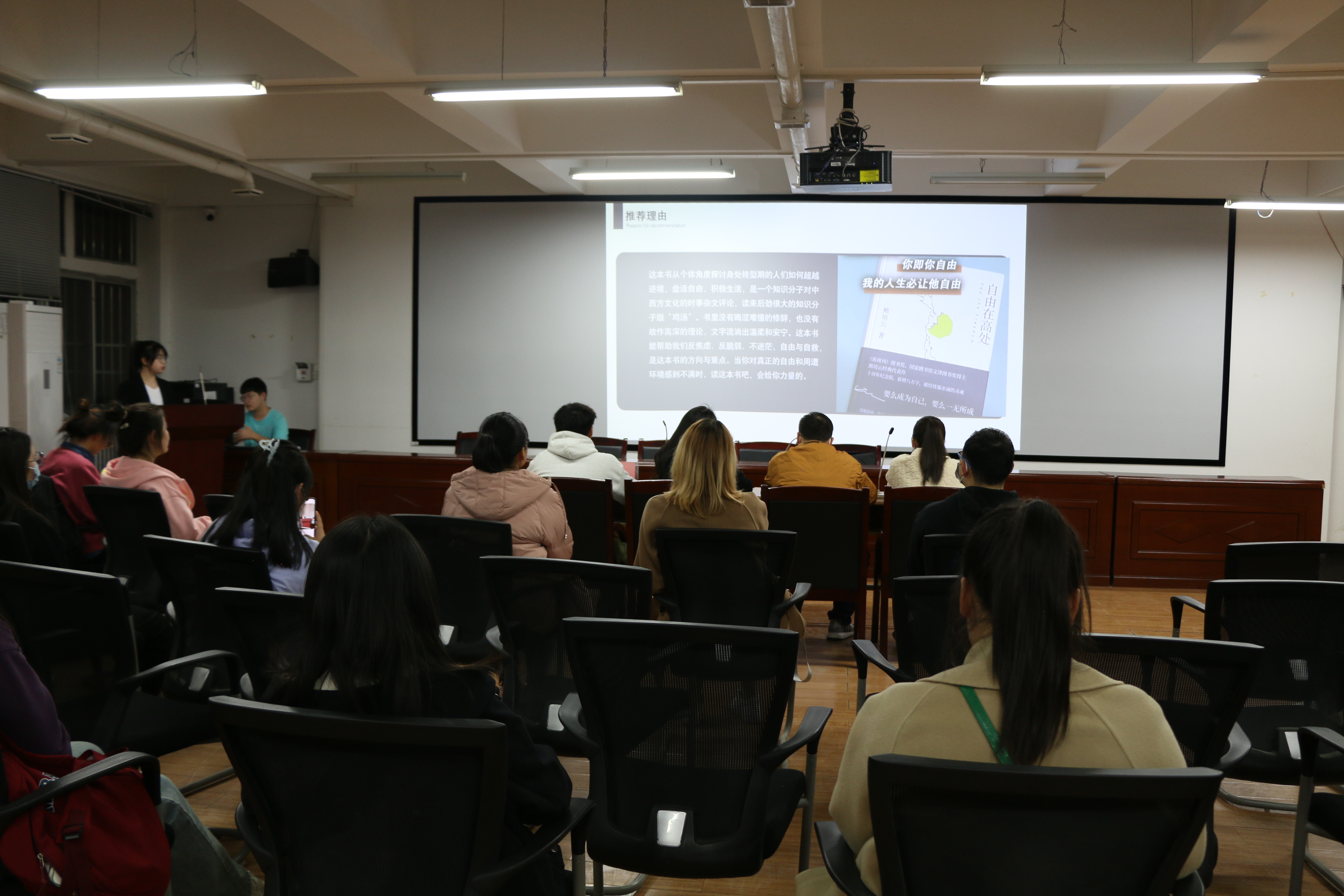 易班工作站于学院115会议室成功举办“阅读青春,有声读书”读书分享会,本次分享会由2021级化学教育师范专业郑文惠主持,学院学生工作办公室辅导员高乐老师、学院兼职辅导员纪小花、张丽、易班工作站站长程俊槐担任本次大赛评委,部分同学参加本次活动。