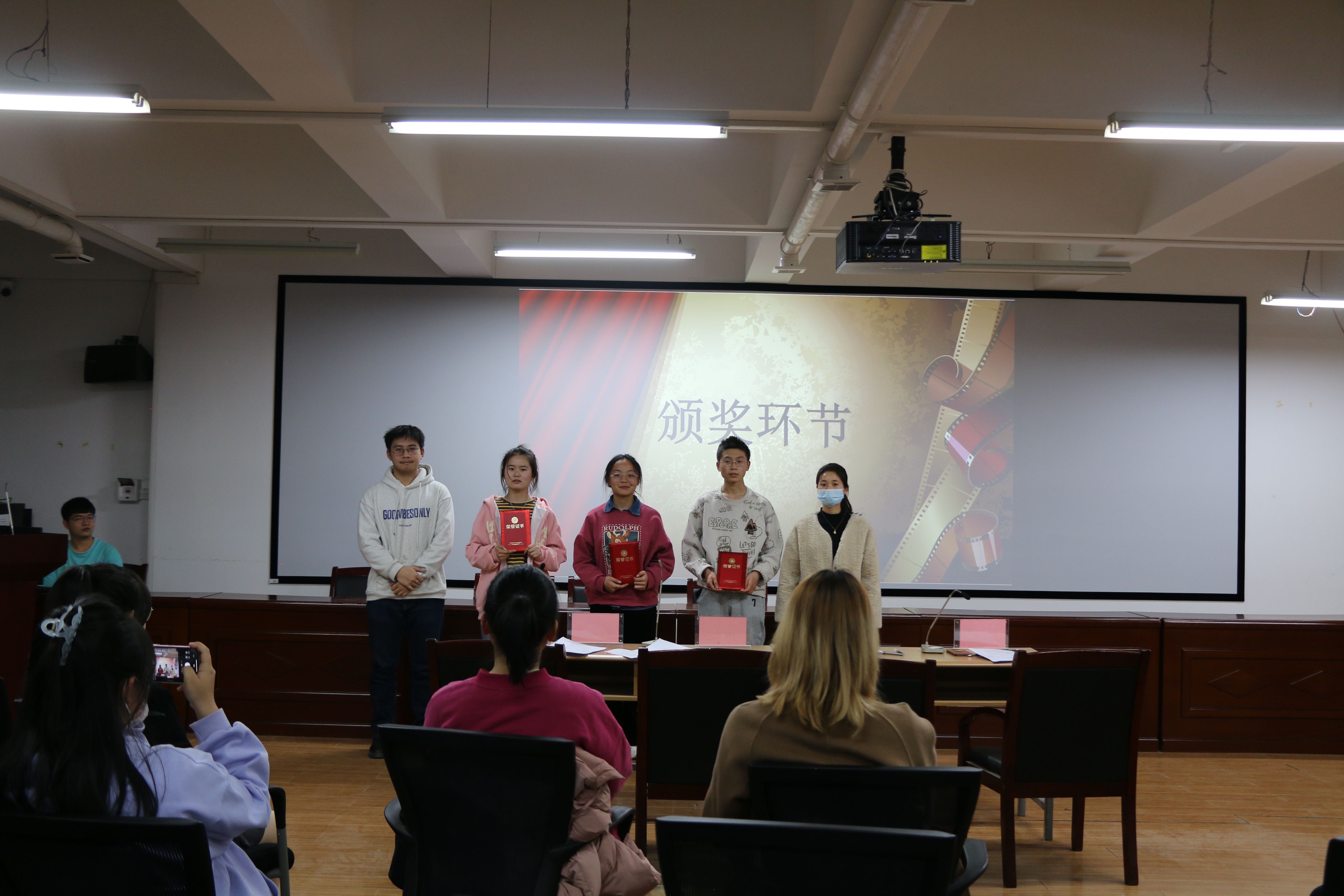 郑文惠宣布活动规则和注意事项。紧接着,每位选手就自己选择的读物进行介绍分享,现场气氛活跃,分享者与现场同学老师进行互动,积极探讨书中内容细节。评委就选手分享的过程表现情况进行点评,并为获奖同学颁发获奖证书。