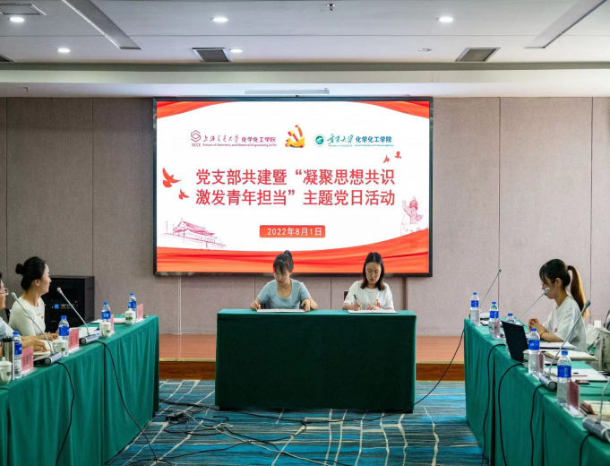 化工硕士党支部书记徐佳璐分别介绍了支部情况、党建特色以及业务工作等情况后,双方党支部负责人签署了支部共建协议书。