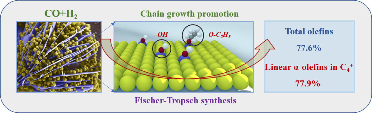 “煤基应用催化”团队在合成气催化转化线性α-烯烃研究方面取得了新进展,设计了一种新型亲水层状Fe基催化剂,实现合成气在典型费托条件(280°C, 1.5 MPa)下转化为烯烃,其中线性α-烯烃(LAOs in C2+)选择性高达77.9%。相关研究成果发表在国际知名期刊《Fuel》(IF=8.035),论文题目:Highly selective formation of linear α-olefins over layered and hydrophilic Fe3O4/MAG catalysts in CO hydrogenation。论文的第一作者为蘑菇视频