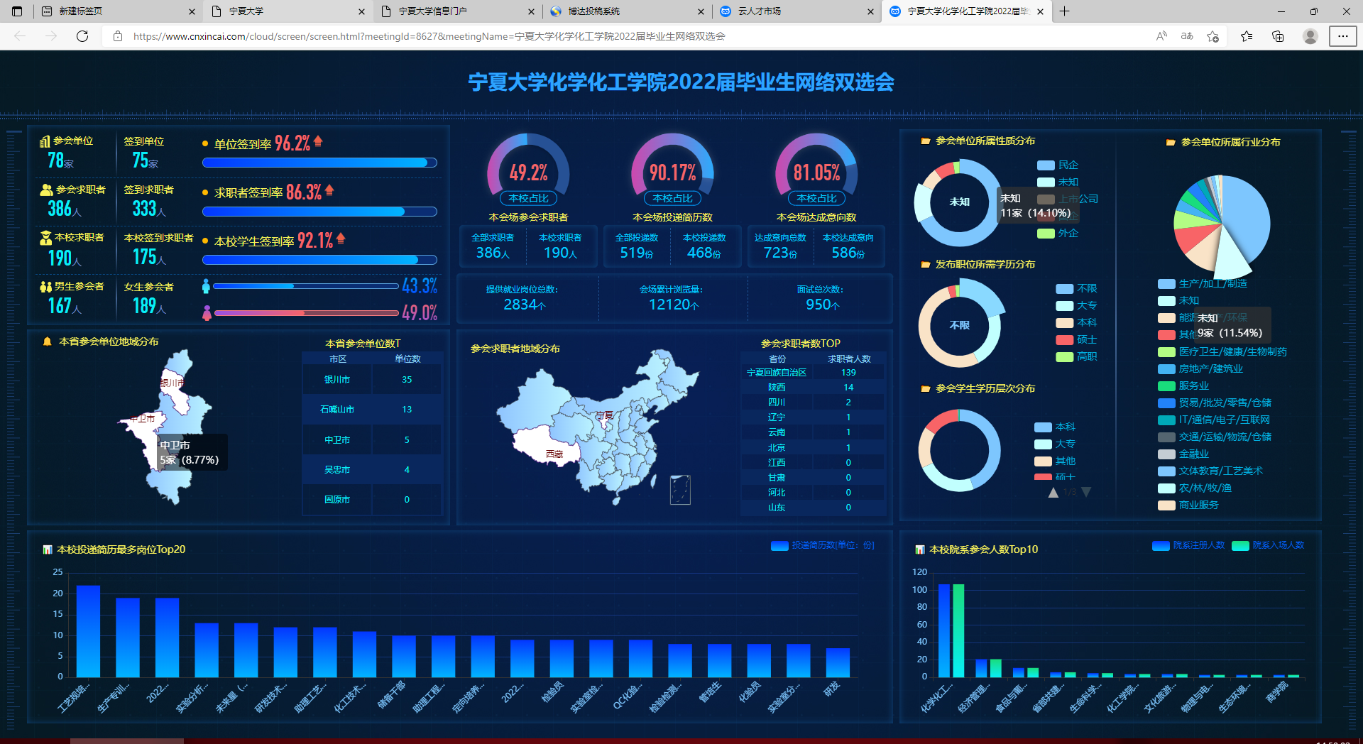 学生给予了很高的评价。先后有500余人线上求职,投递简历468份,947人次与用人单位洽谈面试,385人次与用人单位达成初步求职意向。双选会还吸引了生命科学学院、土木与水利工程学院、经济管理学院、农学院、信息工程学院等兄弟学院的部分毕业生参加。