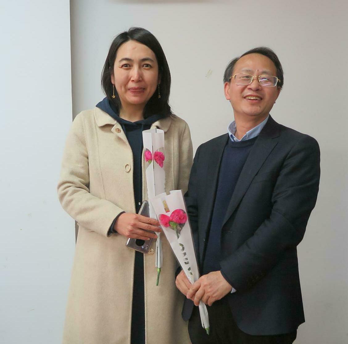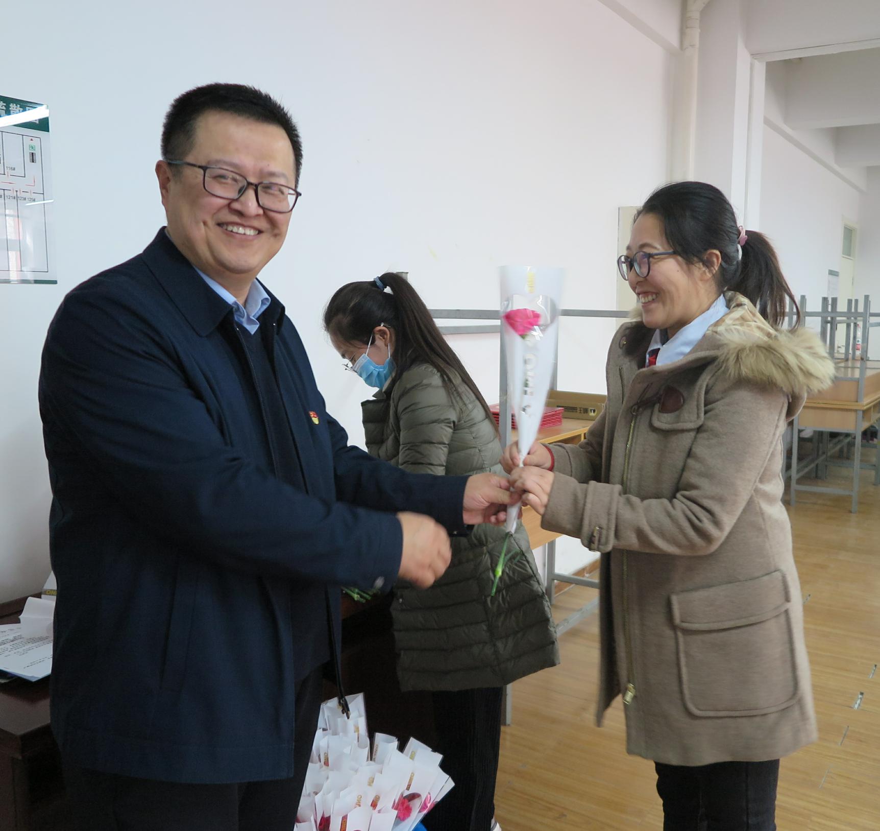 会前,学院领导罗正鸿、高继明守候在会议室门口,为耕耘在教学、科研、管理、服务第一线的全体女教工送上了鲜花,并致以诚挚的节日祝福。