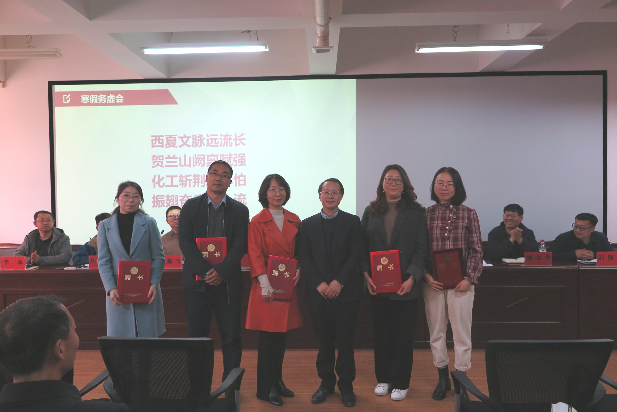 高继明书记宣布了《关于毕淑娴等同志职务聘任及解聘的通知》,学院决定聘任毕淑娴、彭娟为化学系副主任,范辉、马清祥为化工系副主任,陈小燕为实验中心主任,罗正鸿院长为新聘任的5位同志颁发了聘书。