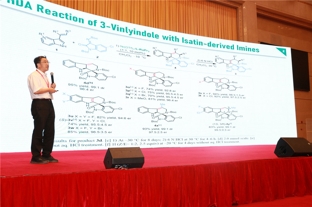 长江学者于广锁、中国科学院上海有机化学研究所国家杰出青年基金获得者李昂、北京大学国家杰出青年基金获得者杨震分别作了题为《手性双氮氧金属配合物在天然产物和活性化合物合成中的应用》、《复杂天然药物的工业合成》、《Upgrading Cross Coupling and Beyond》、《碳中和愿景下煤化工的挑战与机遇》、《多环天然产物的全合成》以及《基于新方法和新策略的天然产物合成》的精彩大会报告。与会代表围绕有机化学、药物化学和化学生物学等相关领域的热点问题展开了热烈的讨论。