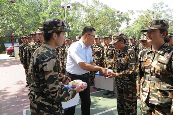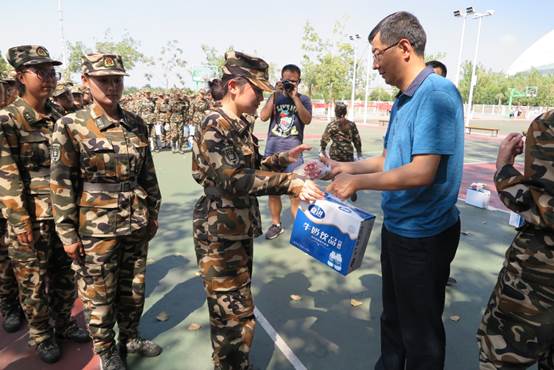 党委书记高继明,院长倪刚,党委副书记桂晓兵代表全院老师慰问烈日下认真训练的教官与师生。