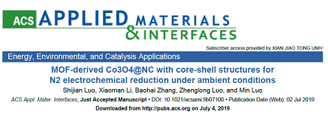 (省部共建煤炭高效利用与绿色化工国家重点实验室)罗民教授负责的能源和环境材料研究团队,在电催化固氮研究方面取得新进展。研究成果在线发表在美国ACS数据库国际著名学术期刊《ACS applied materials & interface》(Impact Factor 2018: 8.456)。论文题目:“MOF-derived Co3O4@NC with core-shell structures for N2 electrochemical reduction under ambient conditions”;DOI:10.1021/acsami.9b07100.蘑菇视频