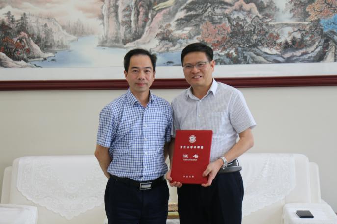 王利华副校长同陈芬儿院士做了深入交谈,并为陈芬儿院士颁发了贺兰山论坛学术报告证书。