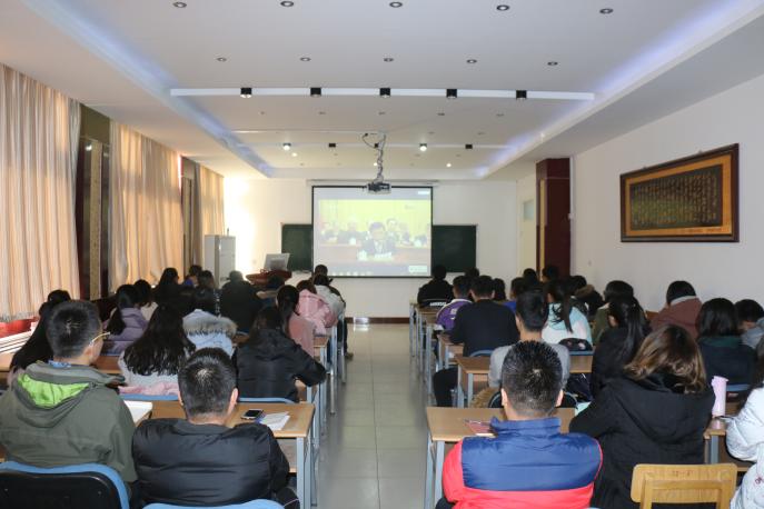 12月18日,学院在知化楼301会议室、303会议室,分别组织师生集中收看庆祝改革开放40周年大会。