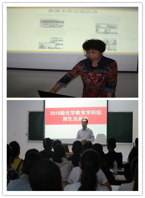 303多媒体教室召开2018级研究生和导师见面会。参加此次见面会的有6位本校硕士生导师、4位外聘实践性导师以及2017级和2018级学科教学(化学)专业的48名研究生。本次见面会由吴晓红老师主持。