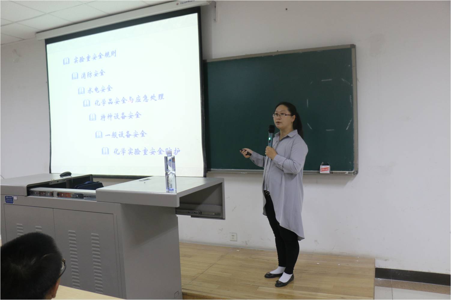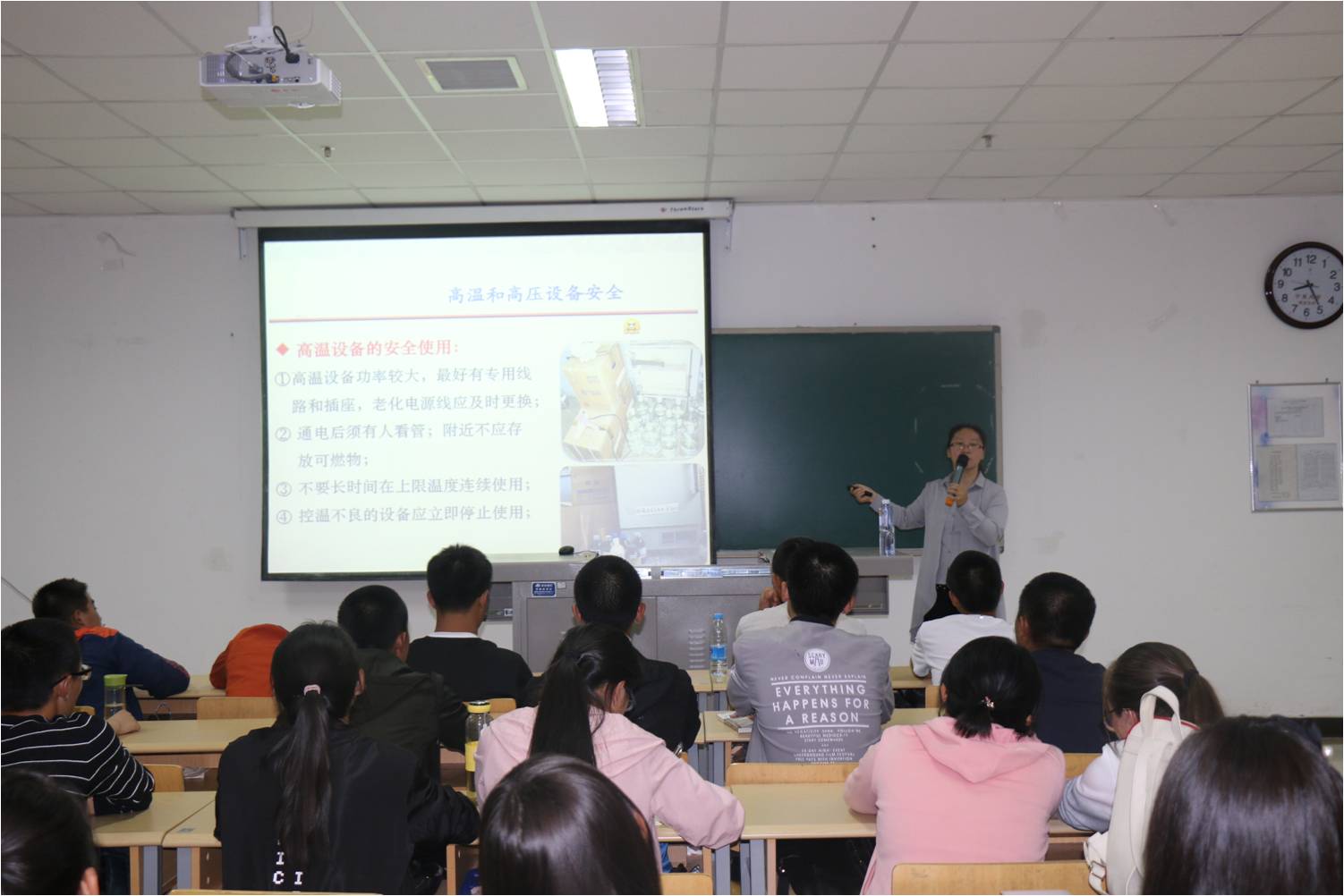 培训围绕“实验室安全规则、化学品安全与应急处理、化学实验室安全防护”等方面展开。吴老师为同学们讲述了消防、水电、一般设备、特种设备等各方面的安全知识。吴老师指出,“防范胜于救灾”,化学人必须要遵守并严格执行实验室的各项规定,且规范操作过程,只有这样才能降低事故的发生率。