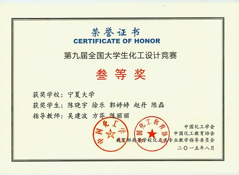 30名化学工程与工艺专业本科生组成的6支代表队经过4个多月的努力,顺利提交设计作品,最终获得全国二等奖1项,全国三等奖2项。