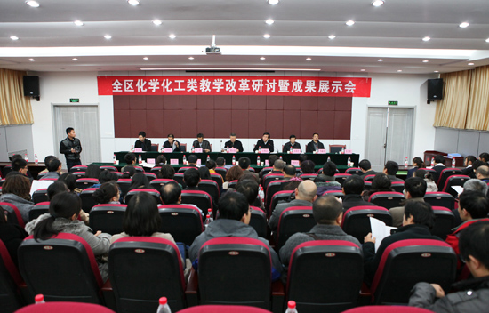 自治区教育厅副厅长冀永强教授发表了热情洋溢的讲话。他指出,为进一步贯彻落实《全面提高高等教育质量的若干意见》和《高等学校创新能力提升计划》,我区高等教育积极推进内涵建设,大力实施教学质量建设工程,不断增加实践教学优质资源。本次研讨会暨成果展示,借助大学生职业技能培训基地的平台,进行我区各高校化学教学改革与精品课示范教学观摩评比的经验交流和学术研讨,对于进一步加强教学改革与创新,建设优质的化学教学资源,积极探索建立适应学生创新精神培养的现代教学管理机制,为全区高校提供共享的成果,对提高我区高等学校教育教学质量发挥了重要作用。