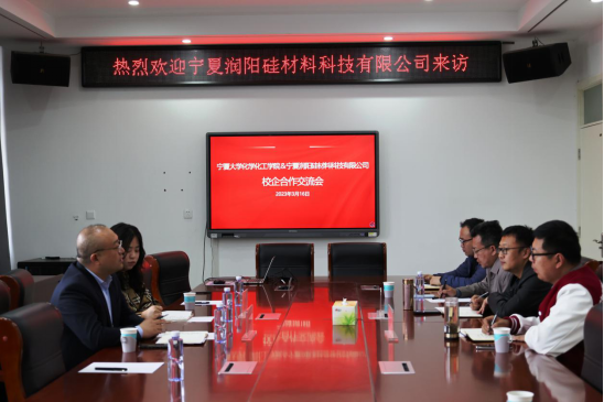 学院常务副院长张鹏飞对宁夏润阳硅材料科技有限公司副总经理霍福科等一行人表示热烈欢迎!他介绍了学院近年来的发展情况、学科专业建设情况,着重介绍了学院与单位开展校企合作的思路模式,希望通过不断交流与宁夏润阳硅材料科技有限公司在产学研合作、学生实习实训、毕业生就业等方面建立长效稳定的合作局面。为促进高校、企业互惠共赢奠定坚实基础,为助力地方经济社会发展提供有力支持。