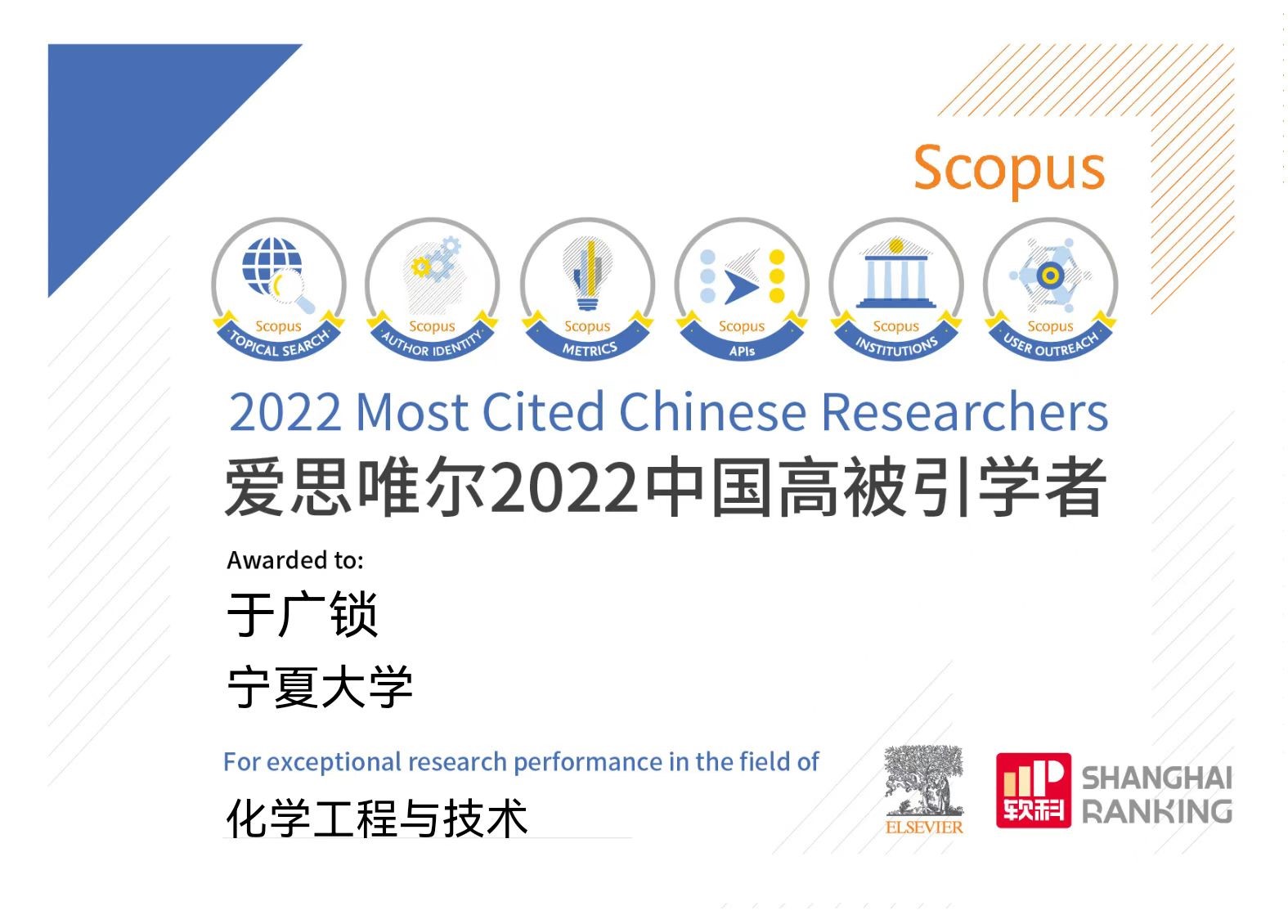 于广锁教授入选“化学工程与技术”领域高被引学者榜单。这是于广锁教授自2018年入职蘑菇视频