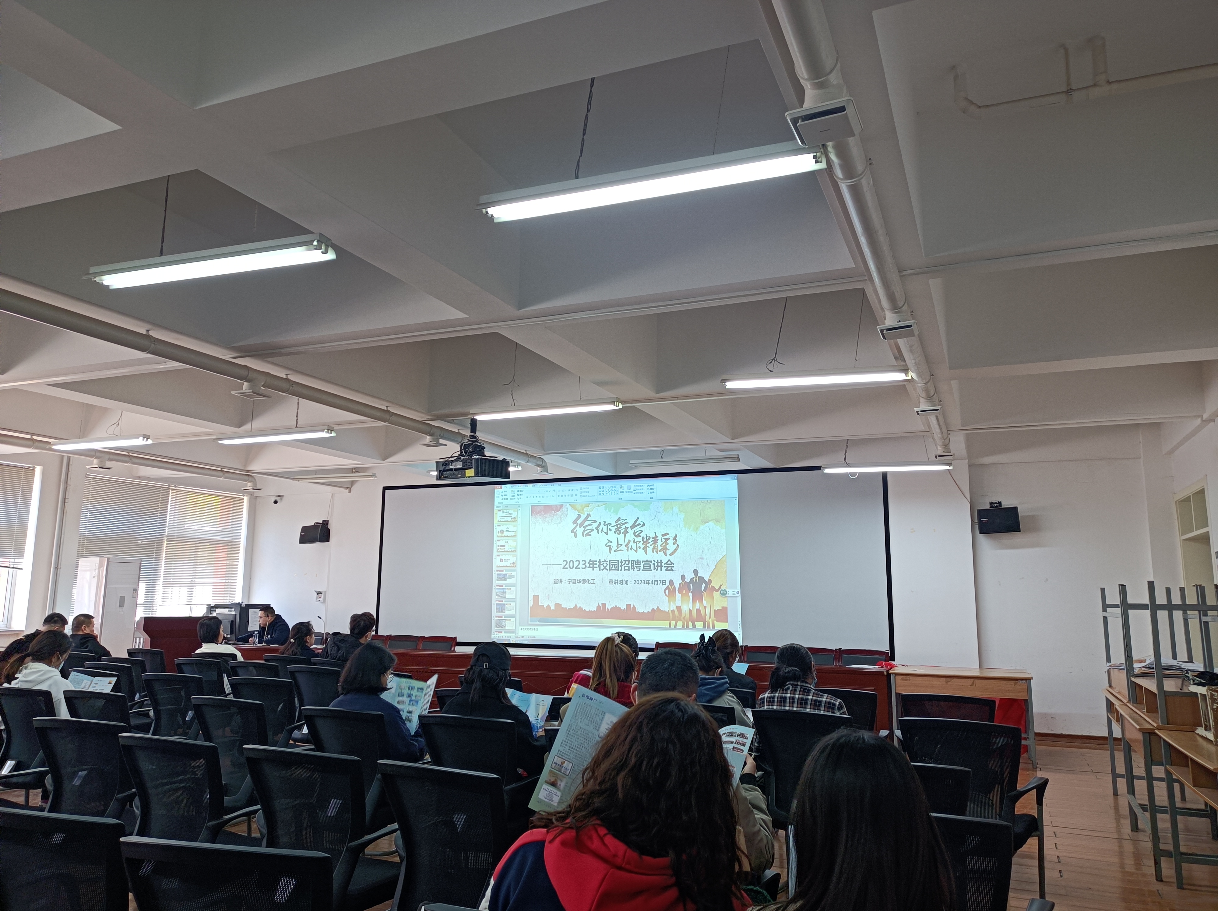 吴楠就宁夏中卫工业园区概况、园区主导产业和产业政策以及园区内企业发展进行介绍。希望双方建立合作关系,引进更多的人才和资源,促进园区壮大发展。同时园区内5家企业在学院115会议室进行了专场招聘宣讲,提供就业岗位60余个。