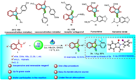 图1. 以碳化钙为炔基源构建3-亚甲基-2-苯基异吲哚啉衍生物
