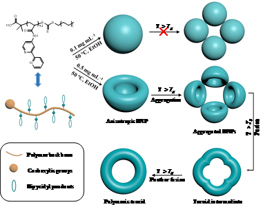 本工作提出了一种融合诱导粒子组装(FIPA)的策略,以各向异性的碗状纳米颗粒(BNPs)作为构筑基元,可控制备聚合物纳米环,并探究了纳米环的形成机理,发现只有各向异性的纳米粒子才能作为构筑基元,聚集和融合形成纳米环。本工作为聚合物纳米环的可控制备提供了新思路。