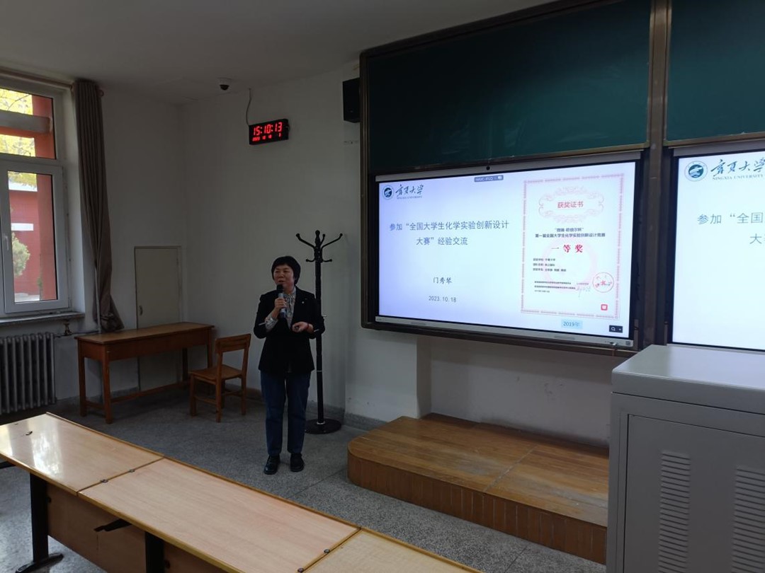 会上,孟哲教授和门秀琴副教授结合自己指导学生参加全国大学生化学实验创新设计大赛的情况,进行了经验交流,为老师们组织学生参赛提出了建议。门秀琴和孟哲两位老师分别在第一届和第二届全国大学生化学实验创新设计大赛中,指导蘑菇视频
