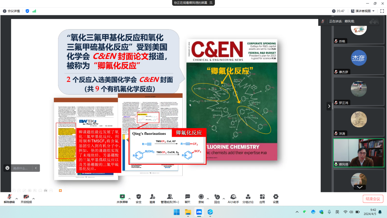 成功举办2024年“知化论坛”学术大讲堂系列报告活动。中科院上海有机所卿凤翎院士以“需求导向和创新驱动的有机氟化学研究”为题进行了讲座,涂涛教授主持本次报告会。