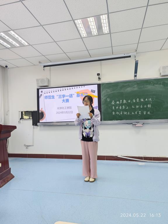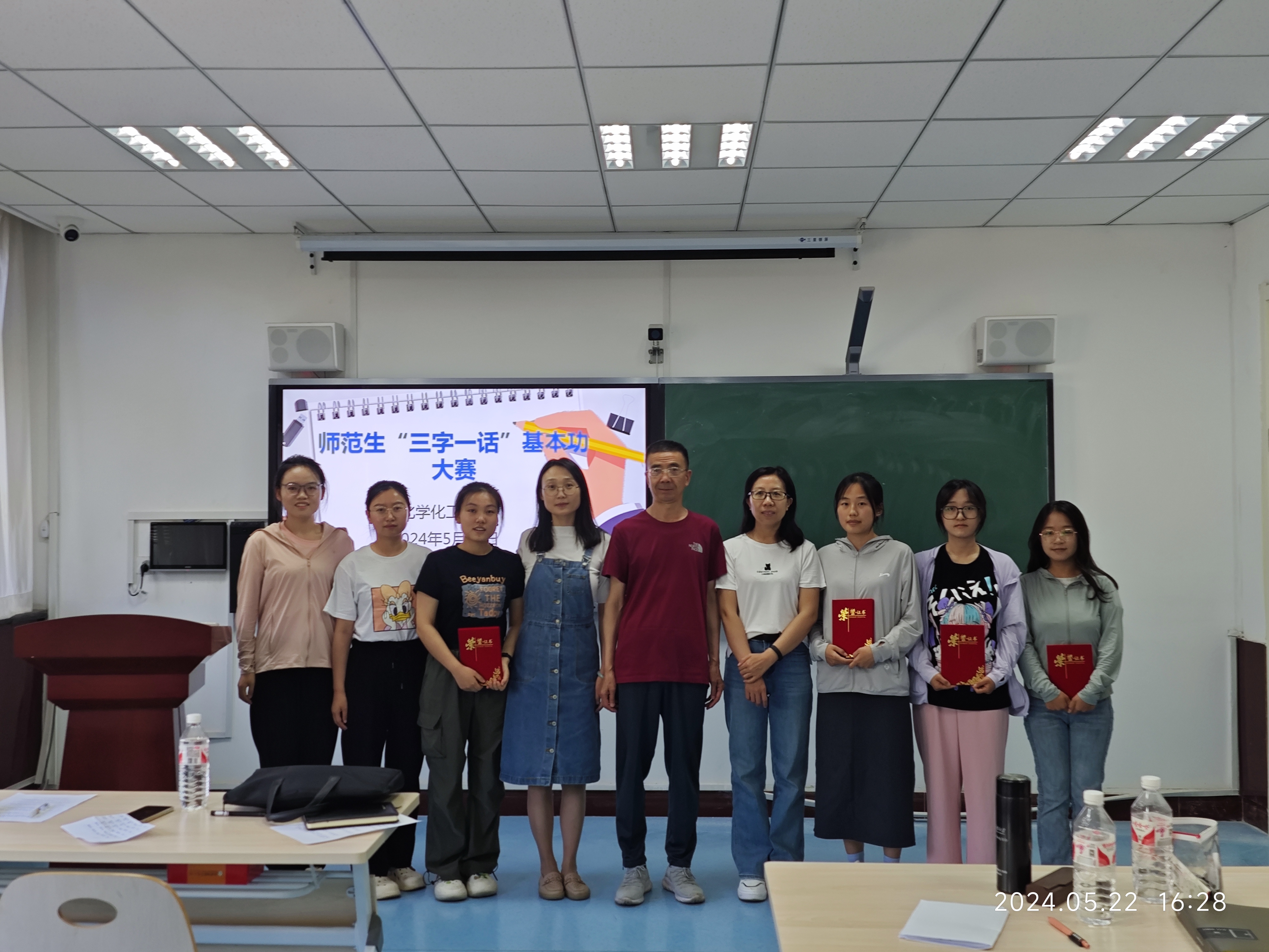 于2024年5月22日下午,在知化楼303举办“三字一话”院级赛。出席的评委老师有房俊卓老师、吕俊敏老师、郭建欣老师,李世静、程乐乐荣获一等奖!