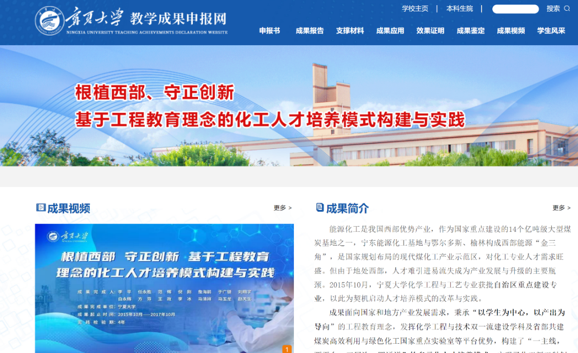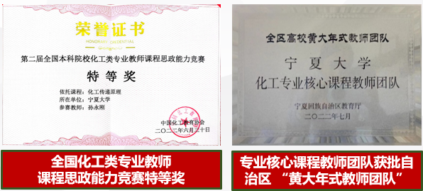 化学工程与工艺虚拟教研室获批教育部虚拟教研室建设点,专业建设成果获2021年获自治区高等教育教学成果奖特等奖1项、二等奖1项。