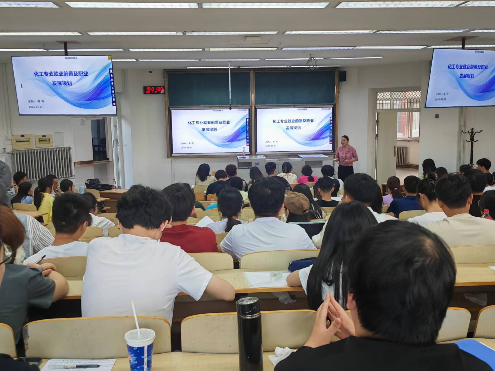 化工、应化等专业本科生开展“化工专业就业前景和职业发展规划”讲座,共有大三、大四年级140余名学生参加,化工系主任李平教授主持了本次讲座活动。