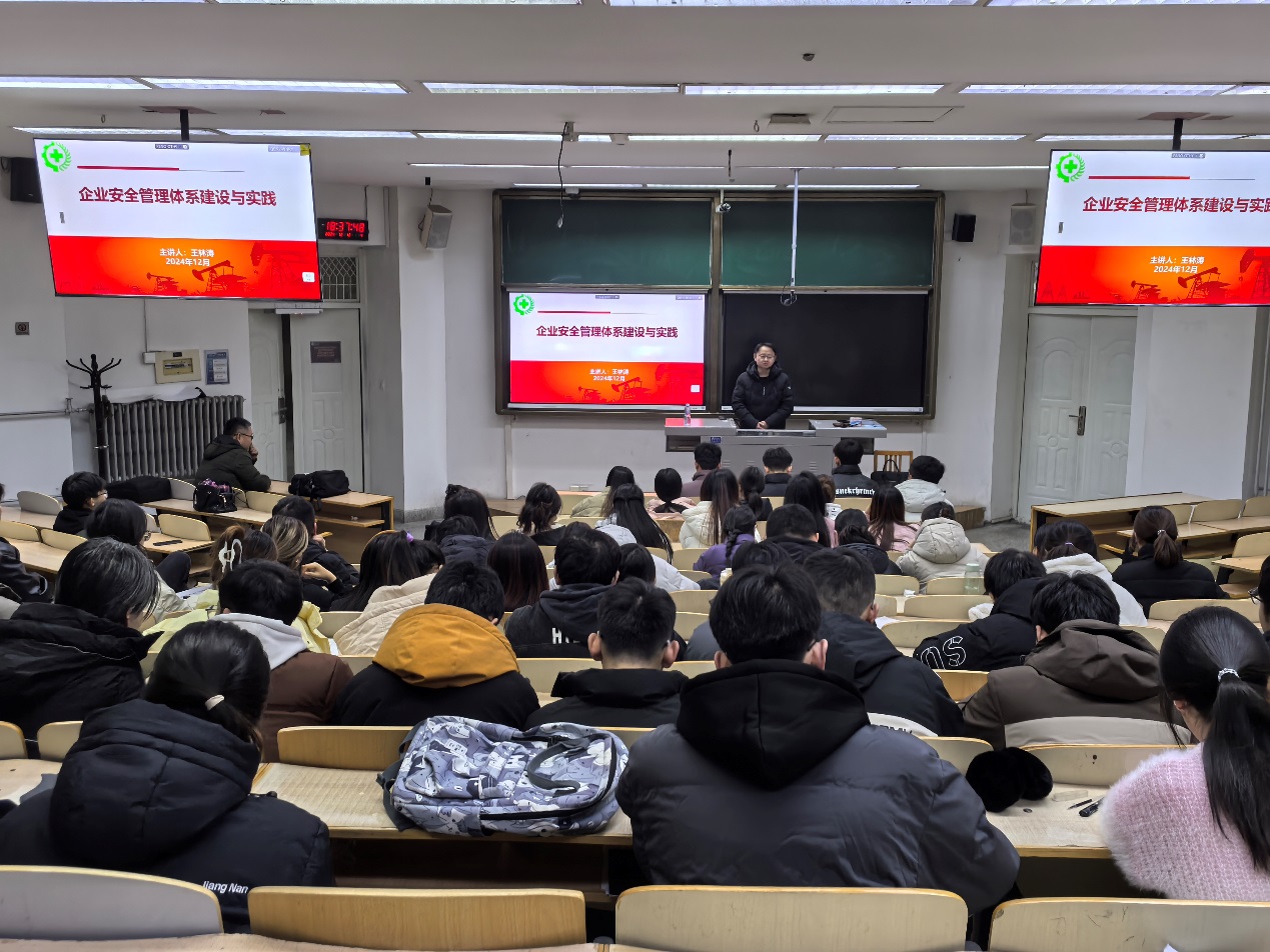 王林涛经理通过分享自己从事安全管理工作的丰富经验和经历使同学们对化工企业安全管理工作有了更加深入的认识,使企业专家深入参与人才培养过程,充分发挥产教融合的协同育人作用。