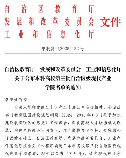 近日,自治区教育厅、发展和改革委员会、工业和信息化厅联合公布了第三批自治区级现代产业学院立项建设名单,蘑菇视频