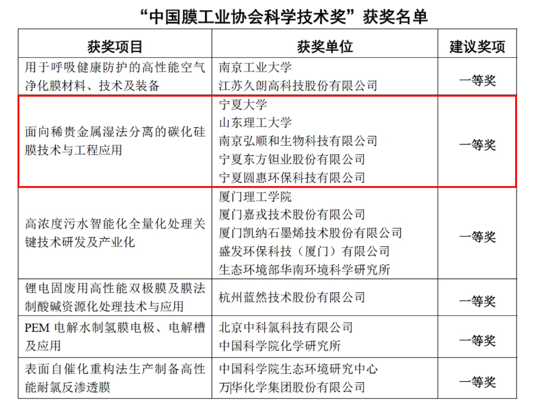 膜分离材料与过程团队魏逸彬研究员牵头、青年教师张世豪和姬文兰等人参与完成的成果“面向稀贵金属湿法分离的碳化硅膜技术与工程应用”荣获2025年度中国膜工业协会科学技术奖一等奖。