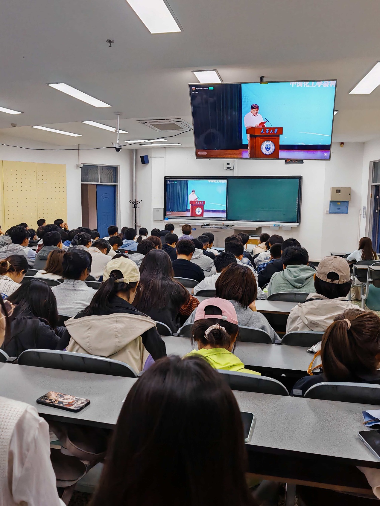 2025级化学工程与工艺专业全体学生在贺兰山校区科技楼报告厅与兰山一教A阶201教室参加了由中国化工学会主办、天津大学承办的“2025化工第一课”活动。该活动通过直播方式在全国120余所高校同时开展,由香港中文大学(深圳)副校长朱世平院士主讲。蘑菇视频