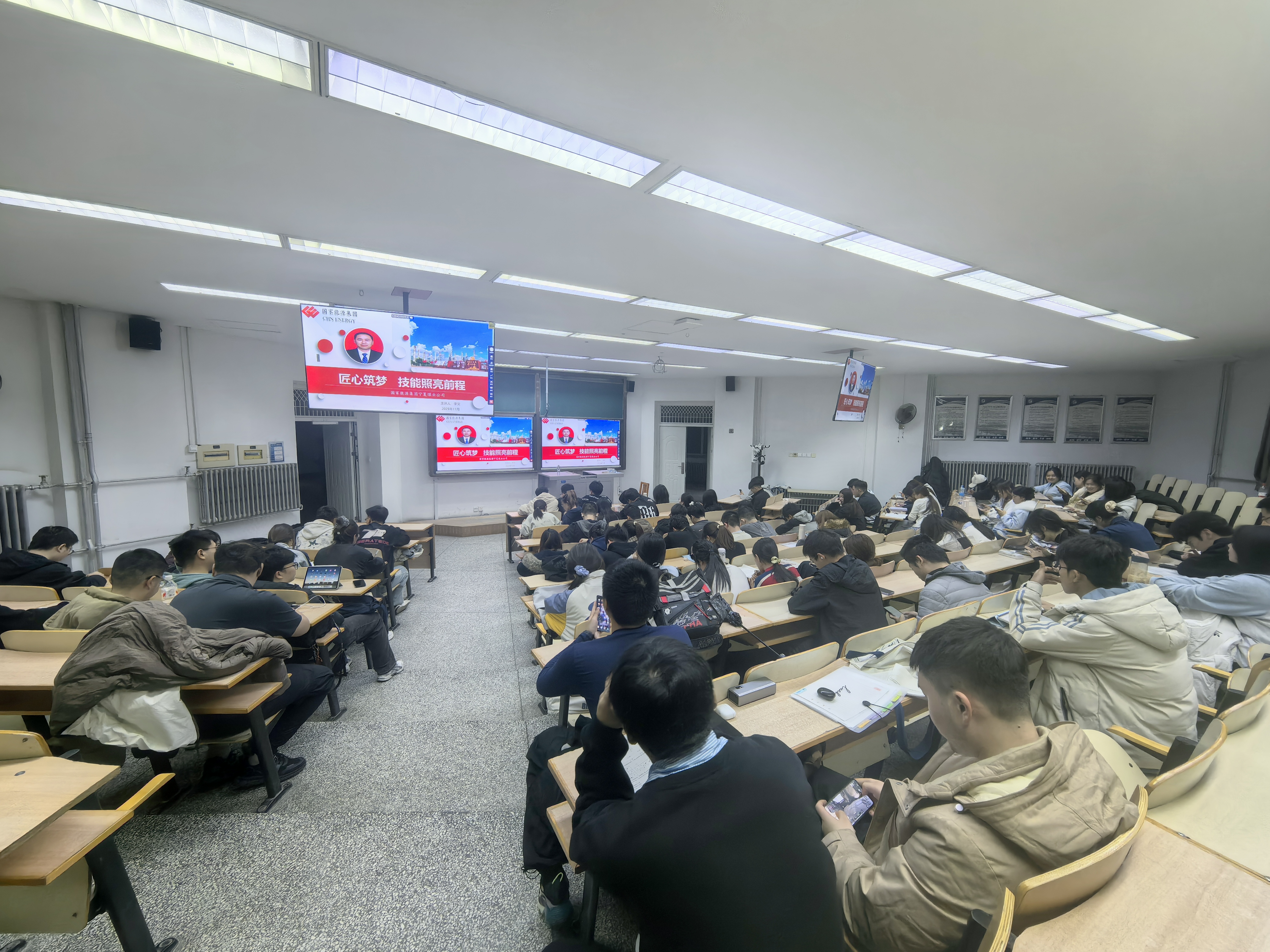 李文工程师为同学们介绍了自己的成长经历。自研究生毕业后入职宁煤公司,在一线岗位深耕十余载,以踏实的工作态度夯实根基,用创新思维助力技术革新,将岁月沉淀为不可替代的竞争力,在国家级、自治区级职业技能竞赛中屡获殊荣,2025年参加中华人民共和国第三届职业技能大赛中斩获优胜奖,2024年在第十五届全国石油和化工行业职业技能竞赛化工仪表维修工赛项中夺得金奖,多次获得宁夏化工行业职业技能竞赛二等奖、三等奖,先后荣获"宁夏青年岗位能手""宁东技术能手""宁煤工匠""国能工匠"等多项技能人才称号。
