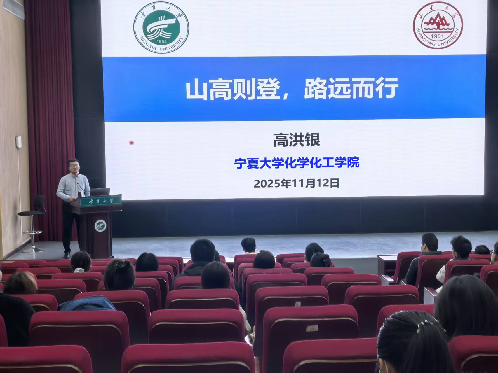 教育部青年长江学者、山东省青年泰山学者高洪银教授,开展了“山高则登,路远而行”的报告,共有近百名本科生、研究生参加,化工系主任李平教授主持了本次讲座活动。